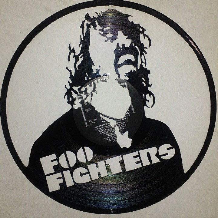 Ručně vyřezáváná vinylová gramodeska - portrét Foo Fighters. Vše je děláno ručně, takže každá gramofonová LP deska je podepsaný originál. Každá deska, pokud to jde, má ze zadní strany očko na pověšení na zeď. Zajímavější je ale instalace, kdy se deska pověsí na silon do prostoru a nasvítí se zepředu zdrojem ostrého světla. Najednou jsou objekty dva. Samotná deska v prostoru a její zvětšená projekce na zdi za ní. Ruční tvorba z poškozených a už nehratelných vinylových gramodesek.