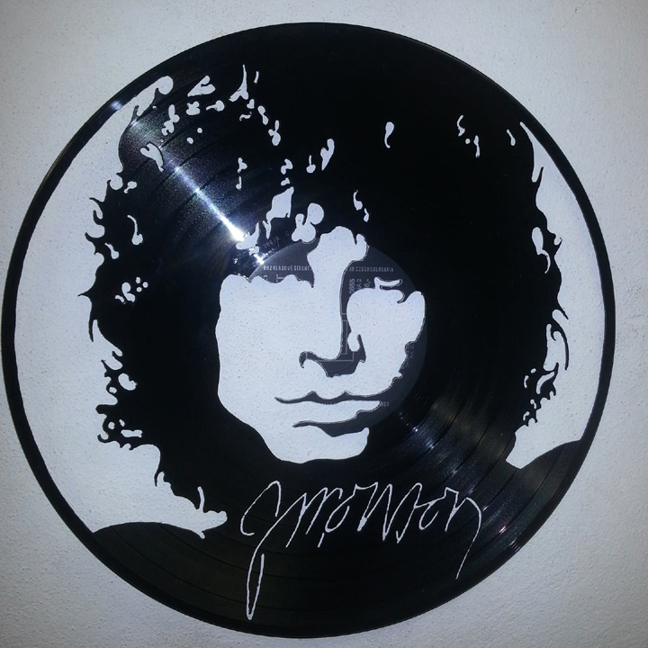 Ručně vyřezáváná vinylová gramodeska - portrét Jim Morrison - kapela The Doors. Vše je děláno ručně, takže každá gramofonová LP deska je podepsaný originál. Každá deska, pokud to jde, má ze zadní strany očko na pověšení na zeď. Zajímavější je ale instalace, kdy se deska pověsí na silon do prostoru a nasvítí se zepředu zdrojem ostrého světla. Najednou jsou objekty dva. Samotná deska v prostoru a její zvětšená projekce na zdi za ní. Ruční tvorba z poškozených a už nehratelných vinylových gramodesek.