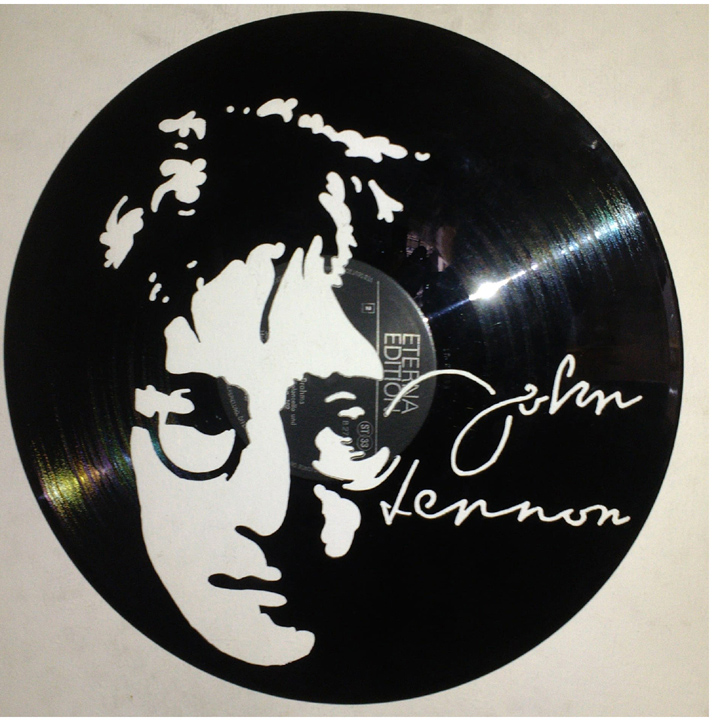 Ručně vyřezáváná vinylová gramodeska - portrét John Lennon - kapela The Beatles. Vše je děláno ručně, takže každá gramofonová LP deska je podepsaný originál. Každá deska, pokud to jde, má ze zadní strany očko na pověšení na zeď. Zajímavější je ale instalace, kdy se deska pověsí na silon do prostoru a nasvítí se zepředu zdrojem ostrého světla. Najednou jsou objekty dva. Samotná deska v prostoru a její zvětšená projekce na zdi za ní. Ruční tvorba z poškozených a už nehratelných vinylových gramodesek.