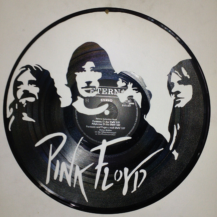 Ručně vyřezáváná vinylová gramodeska - portrét Pink Floyd. Vše je děláno ručně, takže každá gramofonová LP deska je podepsaný originál. Každá deska, pokud to jde, má ze zadní strany očko na pověšení na zeď. Zajímavější je ale instalace, kdy se deska pověsí na silon do prostoru a nasvítí se zepředu zdrojem ostrého světla. Najednou jsou objekty dva. Samotná deska v prostoru a její zvětšená projekce na zdi za ní. Ruční tvorba z poškozených a už nehratelných vinylových gramodesek.