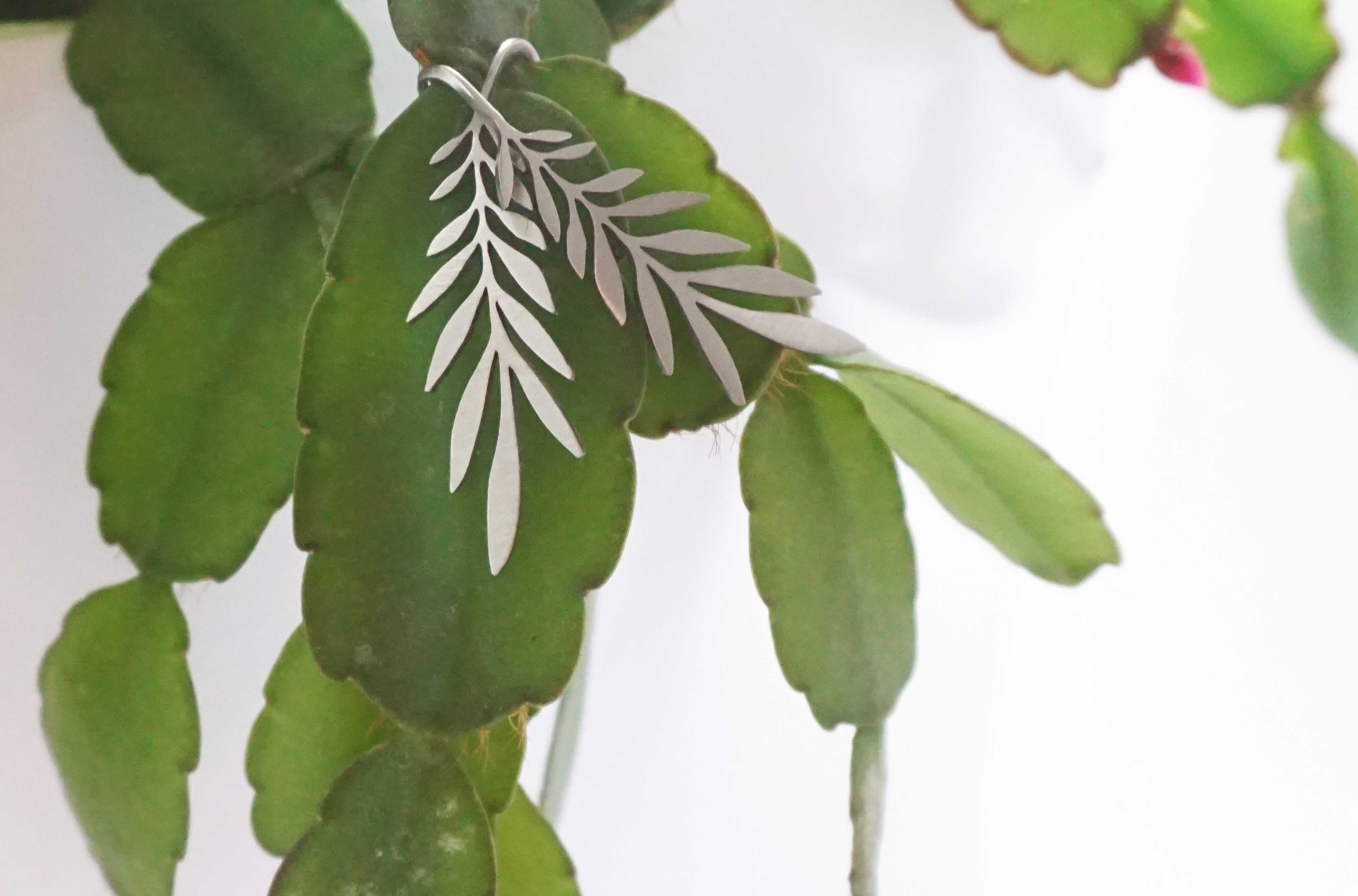 Designové náušnice Palma ve tvaru palmového listu značky INTIMITY od autorky Lucie Zemanové jsou vyrobené z broušeného nerezu. Náušnice doplněny kovovými nebo plastovými zarážkami. Rozměry: 50 x 12 mm.