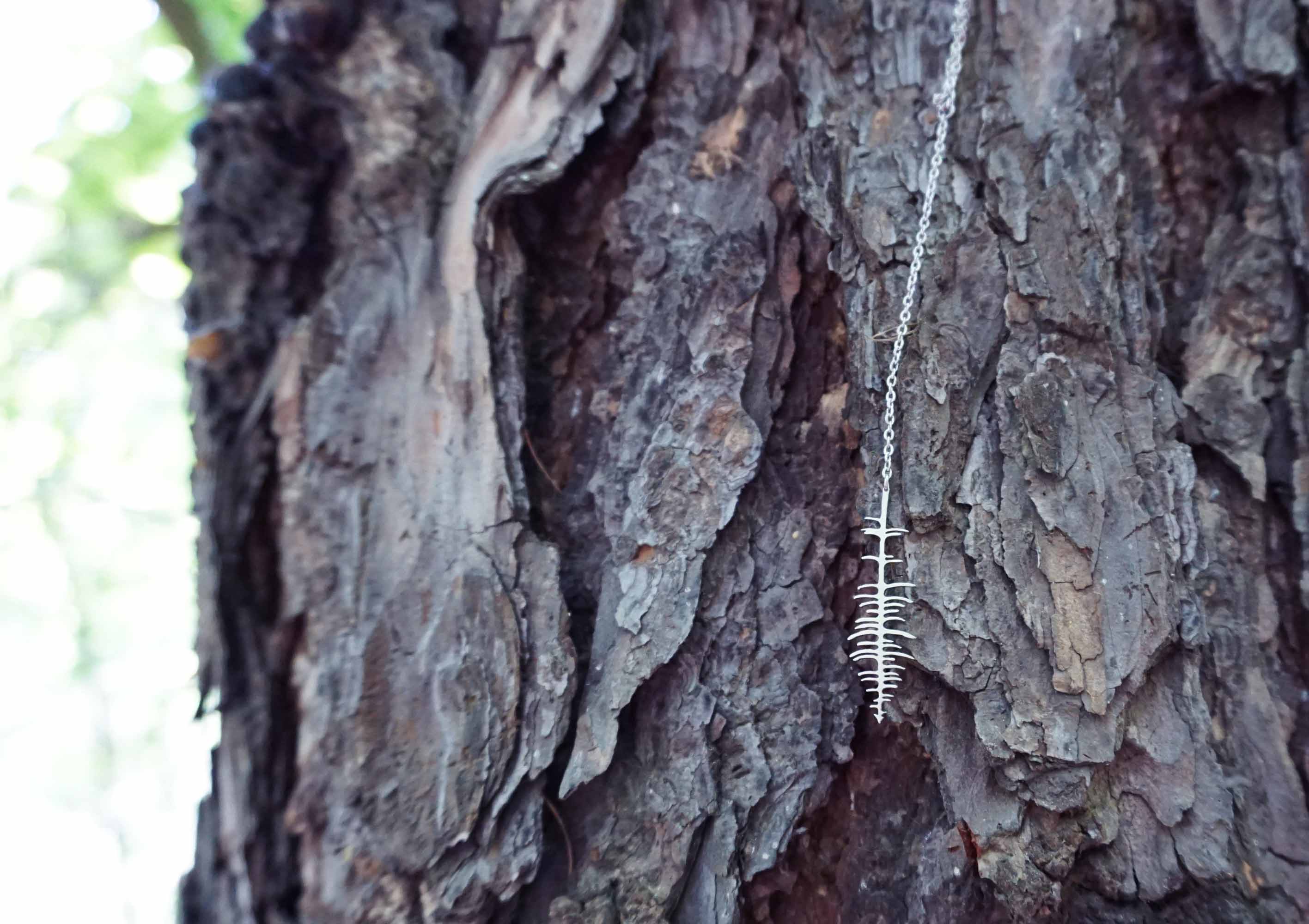 Designový dlouhý řetízek Stromy značky INTIMITY od autorky Lucie Zemanové je vyrobený z broušeného nerezu. Celková délka řetízku je 40 cm. Velikost přívěšku 10 x 32 mm. Ukončen pomocí amerického zapínání.
