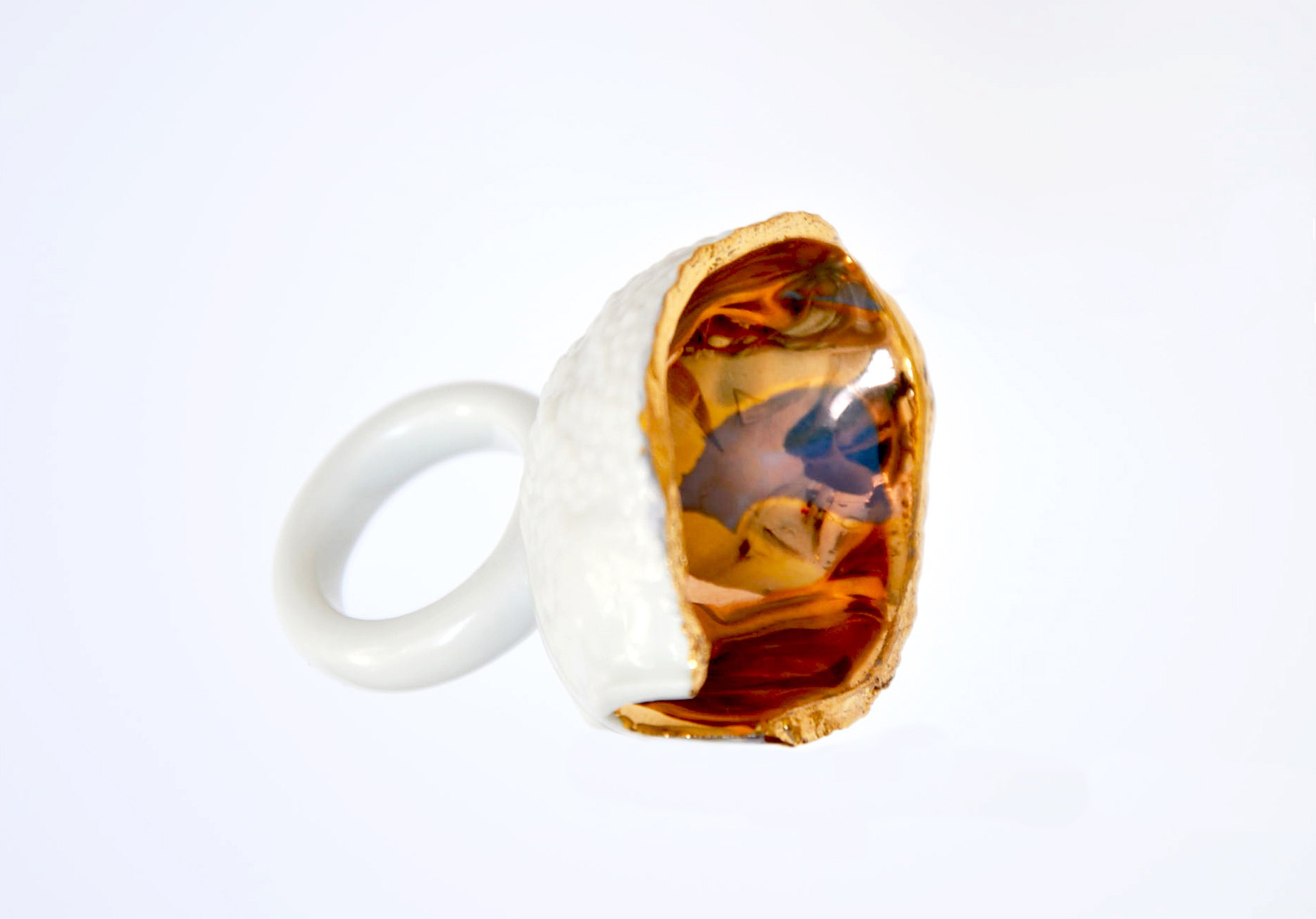 Ručně vyráběný porcelán - Porcelánový designový prsten z kolekce Flóra.