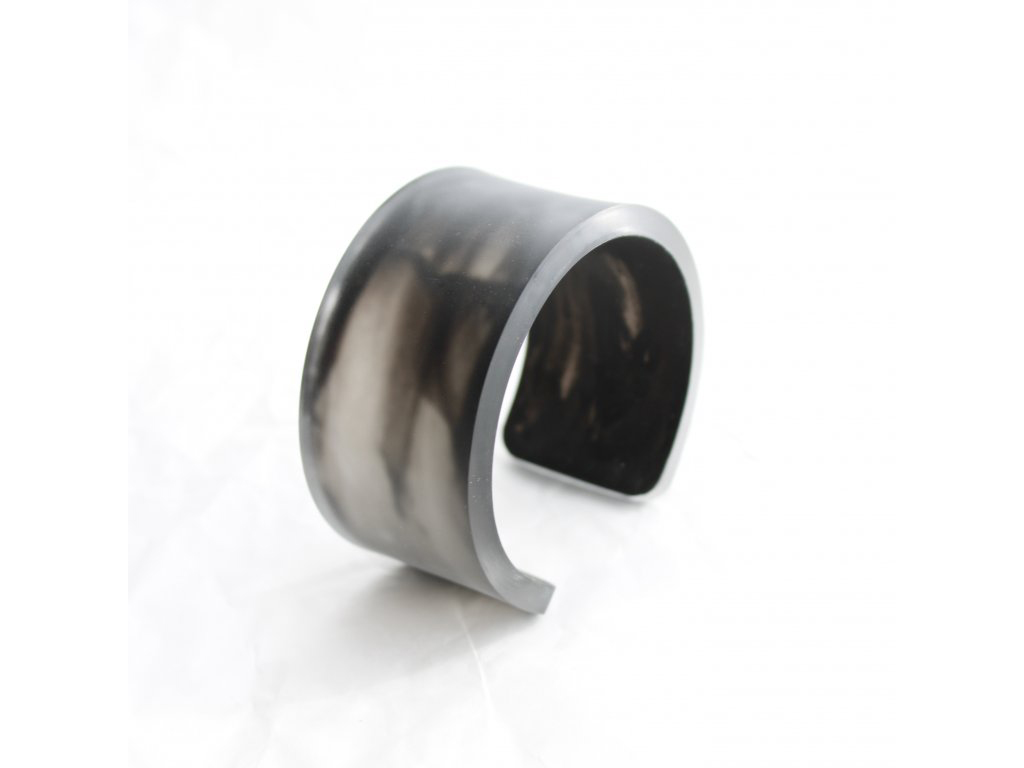 Průsvitný designový náramek od yo_soy z akrylátového skla jedinečný díky originální abstraktní malbě. Minimalistický solitérní náramek z matně průsvitného akrylátového skla. Je domalovaný černou akrylátovou barvou, která se již nesmyje. Náramek má na výšku 37 mm, akrylátové sklo je silné 3 mm. Náramek lze při převlékání lehce rozevřít.