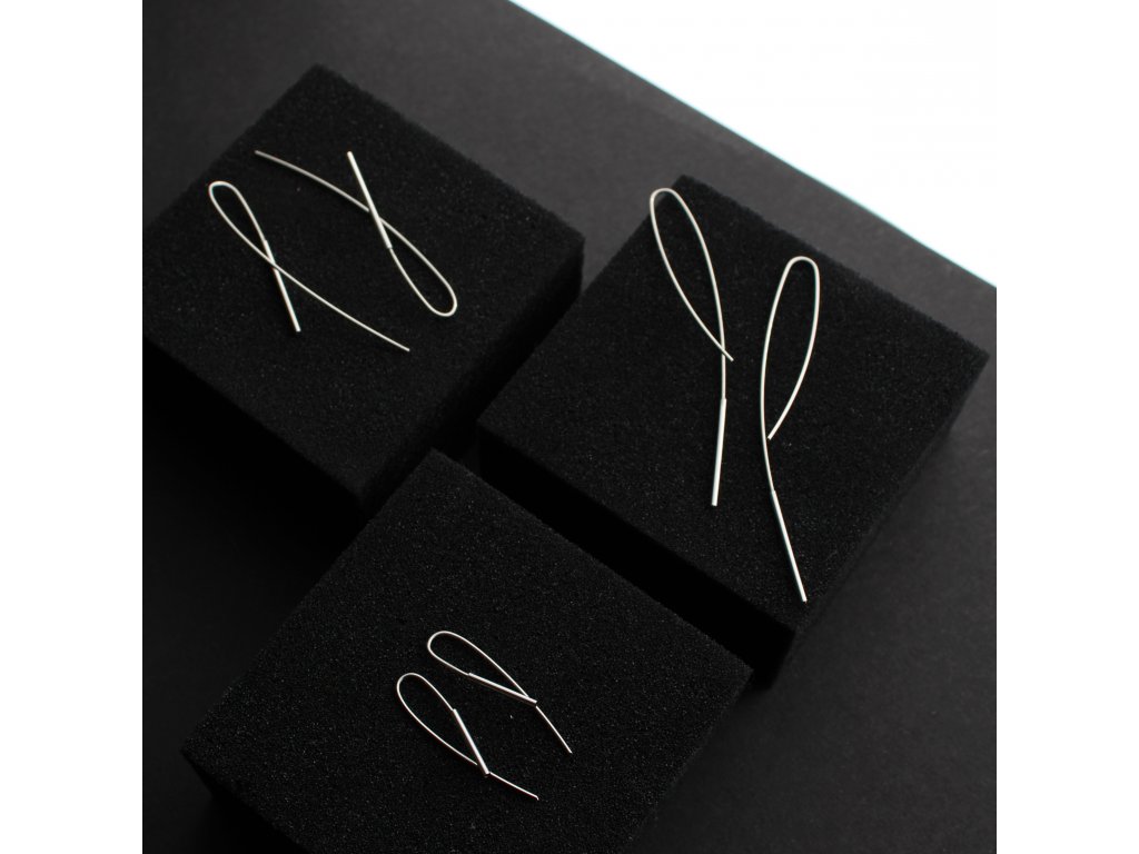 Náušnice jako stočená vlnka, 3 velikosti: a) 3,5 cm dlouhá v zadní části, 2,5 cm v přední , b) 6,5 cm dlouhá v zadní části, 4,5 cm v přední, c) 8 cm dlouhá v zadní části, 5 cm v přední.