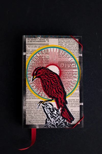Originální zápisník SUNBIRD má na obálce autorský design Sluneční pták vytvořený za pomoci sítotisku. Deafmessanger notebook velikosti A6 (12 x 17,5 cm) je vyroben z recyklovaného papíru. Uvnitř najdeš tužku na psaní a mezi listy bloku tě možná překvapí vložené staré fotografie, pohlednice, stránky z knížek a časopisů, či použité lístky na tramvaj. Fotky z "interiéru" bloku neodpovídají jeho skutečnému obsahu. Nechte se mile překvapit :-) a pozorně si zápisník prohlédněte ať vám nic neuteče. Proti otevírání jsou desky zajištěny gumičkou.