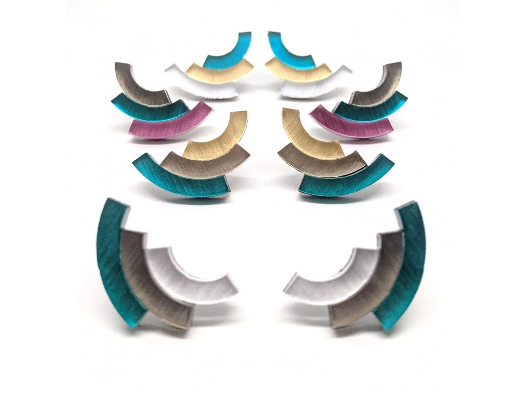 Originální designové barevné náušnice Duha - Rainbow značky FIFLE. Duha je odrazem slunečního světla na vodních kapkách v atmosféře. S tímto doplňkem se zaručeně blejskneš, ať už je atmosféra jakákoliv. Staň se duhovou vílou a nezapadni v davu. Náušnice jsou ručně broušené, což jim dává metalický lesk. Puzety jsou z chirurgické oceli a jsou do náušnic navrtané, takže se nemusíš bát odlepení.
