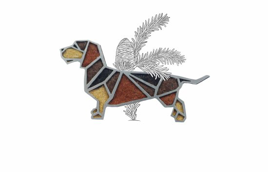 Designová geometrická zvířecí brož pes Jezevčík značky INTIMITY od autorky Lucie Zemanové je vyrobena z broušeného nerezu a filcu. Zapínání na brožový můstek. Vhodná na kabát a svetr. Rozměry: 58 x 33 mm, tloušťce 3 mm.