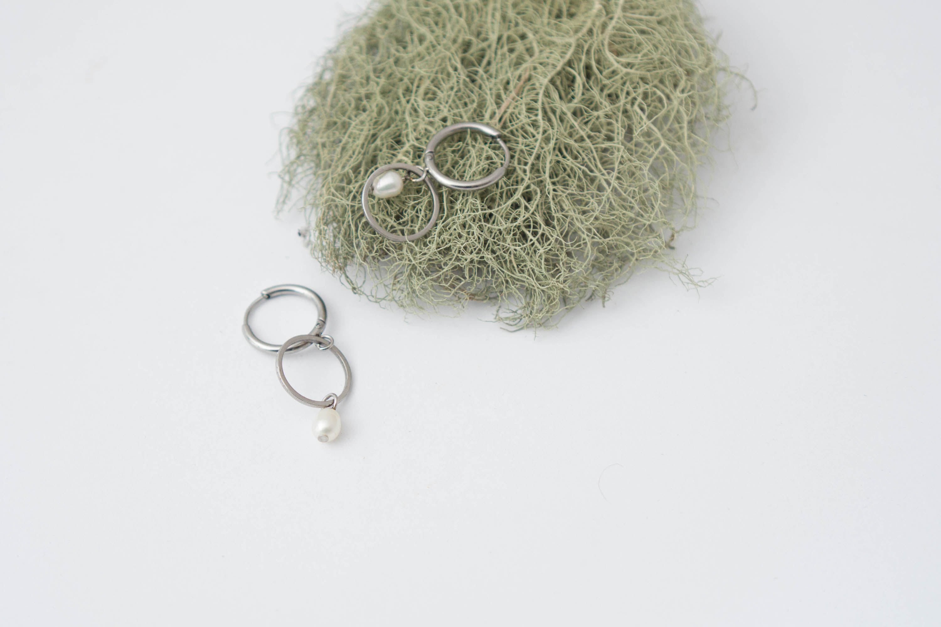 Designové Asymetrické náušnice s perlou značky INTIMITY od autorky Lucie Zemanové jsou vyrobené z nerezové oceli doplněné přírodními perličkami. Náušnice doplněny kovovými nebo plastovými zarážkami.
