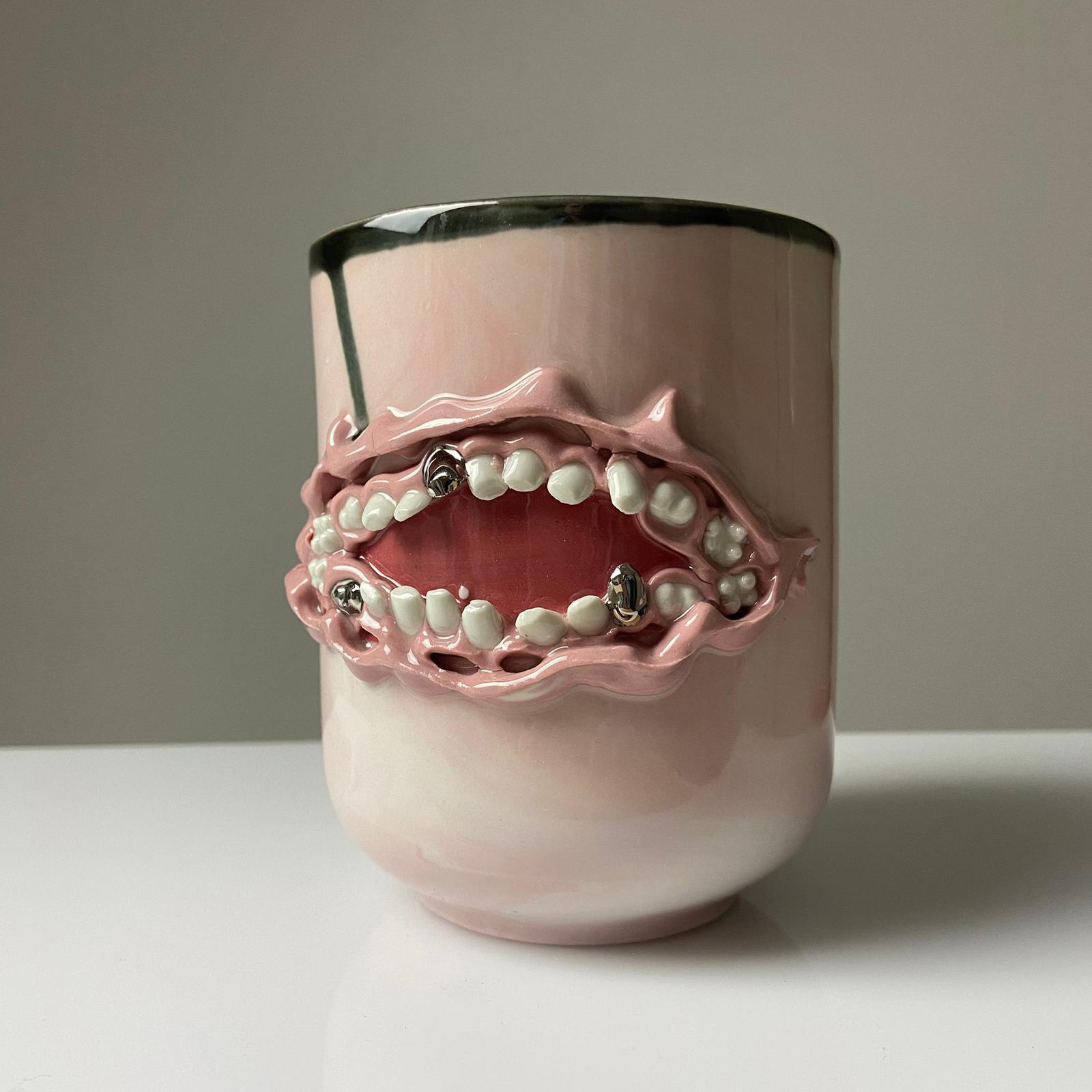 Ručně vyráběný porcelán - Porcelánový velký hrnek ZUBY, výška 10,5 cm, objem 450 ml
