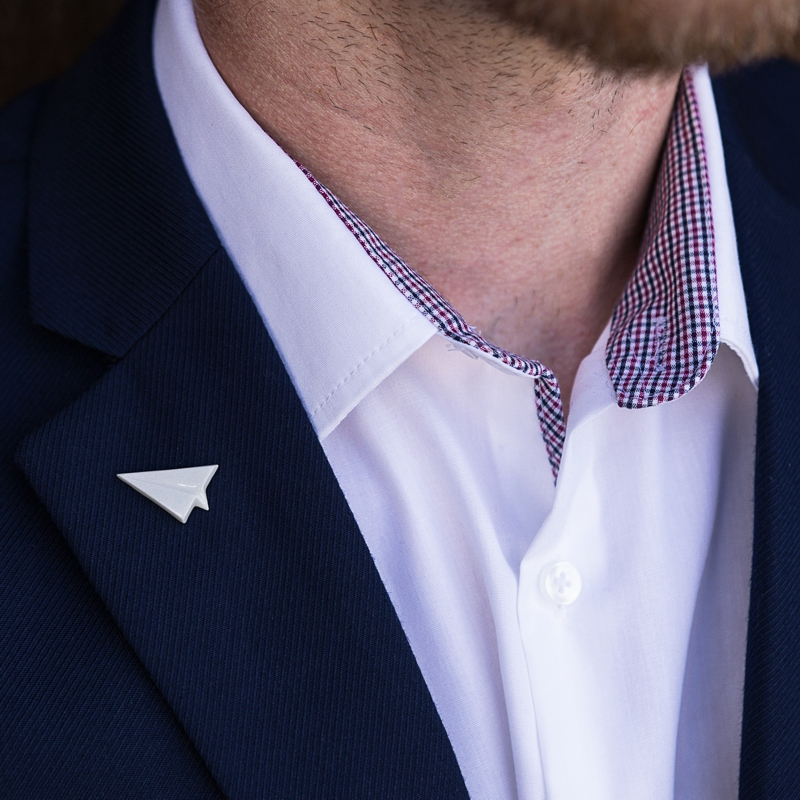 Bílá porcelánová ozdoba do klopy ŠIPKA - originální designový porcelánový šperk ve tvaru šipky o rozměru 2,1 x 1,2 cm inspirovaný origami, japonským uměním skládání papíru. Origami je staré japonské umění skládání papíru. Porcelart je nové české umění skládání porcelánu. Originální ručně vyráběné české porcelánové šperky inspirované japonským uměním skládání papíru. Orikata. Orisue.