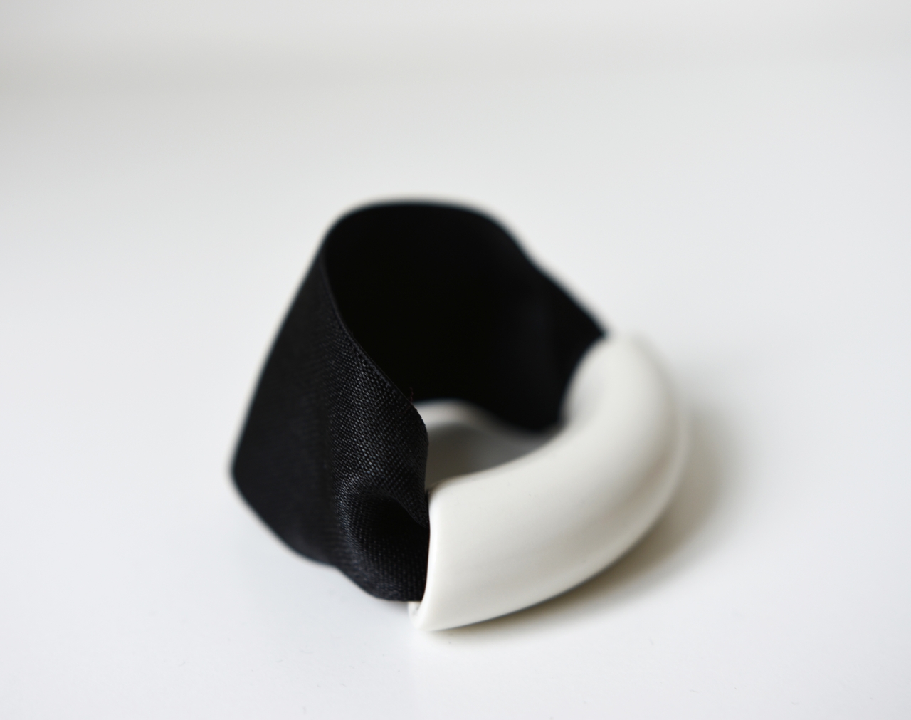 Ručně vyráběný porcelán - Porcelánový designový náramek bílý Půlkruh z kolekce CIRCLE.
